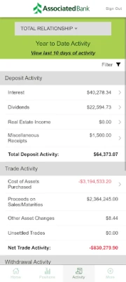 Convenient and secure access to your trust and investment information wherever you are with Associated Portfolio Online Mobile App. The app provides a snapshot of your total wealth, making it easy for you to share information with your trusted advisor, making informed financial decisions based on your goals.