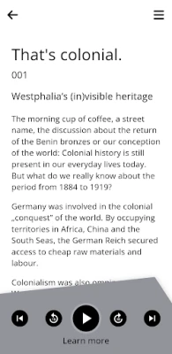 The app offers visitors to the exhibition ‘That's colonial. Westphalia's (in)visible heritage’ at the LWL-Museum Zeche Zollern in Dortmund all exhibition texts in English.