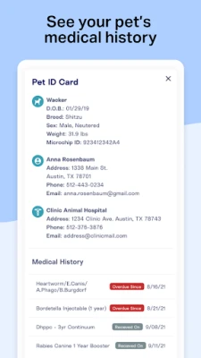 *Access and share pet vaccine information with other service providers, such as your groomer or boarder