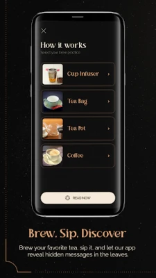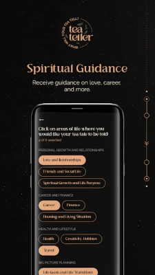 Ever pondered how cosmic energies shape your relationships, love life, the soulmate search, friendship, career guidance, adventure and travel dreams? Unearth the sacred signs hidden in the bottom of your cup. Explore spiritual insights in the ethereal realm of tessomancy—the millennia-old art of tea leaf divination —now accessible on your phone. Snap photos of your leaf patterns in the app, and choose areas like love, career, personal journey, self discovery, friendships, spiritual quests, or personal growth, to receive a divinely unique reading.